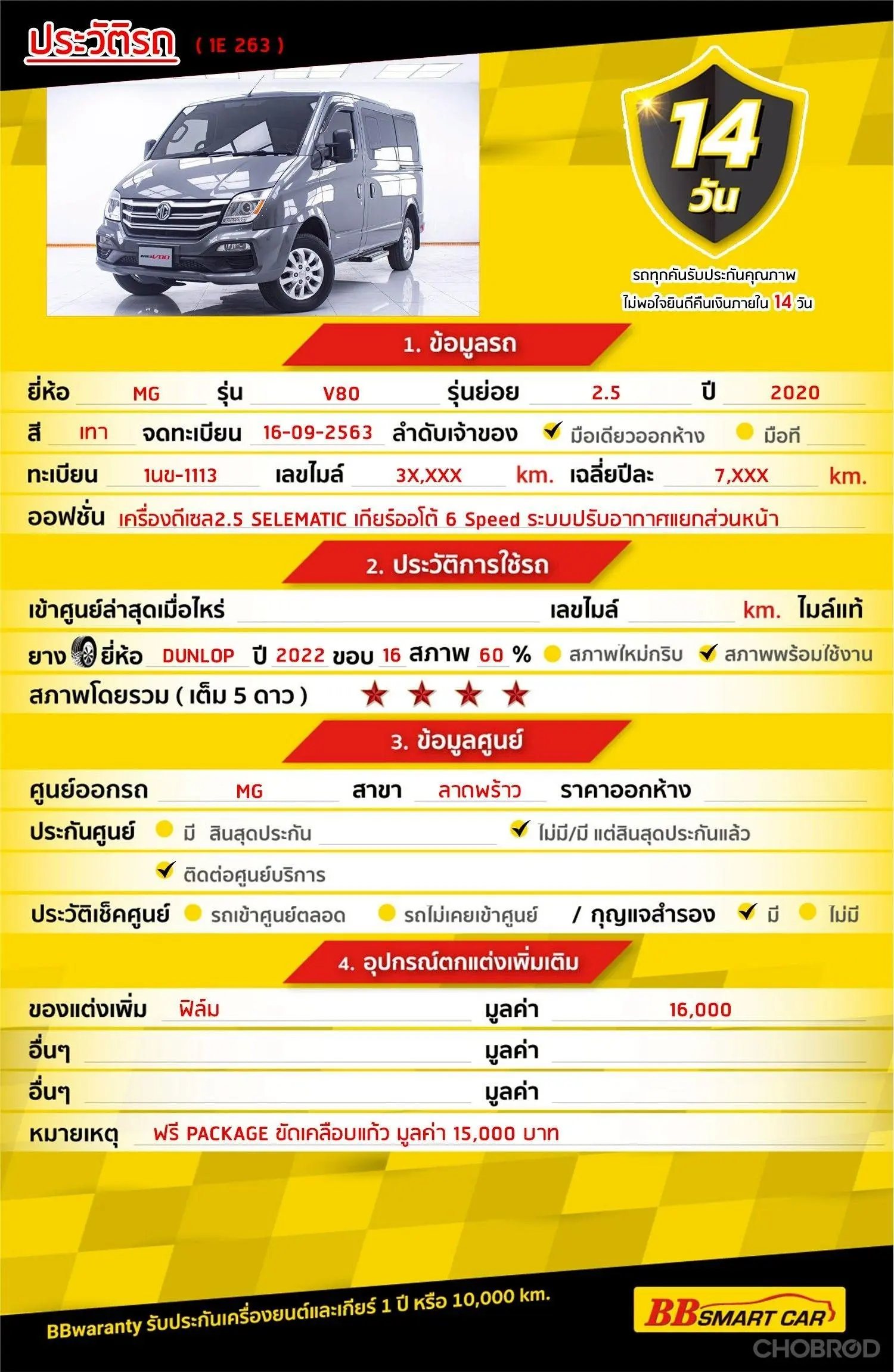 MG V80 2.5 AT 2020 ออกรถ 0 บาท จัดได้ 479,000 Line:@bbsmartcar 🔥จอง 199 บาท ส่งบัตรประชาชน รู้ผลพิจารณาภายใน 30 นาที ไม่ผ่านคืนเงินจองทุกกรณี 🔥ซื้อรถกับ BB พร้อมให้คำปรึกษา แก้ทุกปัญหา ให้ทุกเรื่อง บริการ call center 24 ชม. 🔥BB Care Plus รับประกันหลังการขาย สูงสุด 2 ปี หรือ 20,000 km.. 🔥มีรถให้เลือกมากกว่า 1,800 คัน สาขา 1 สี่แยกมไหสวรรย์ ใกล้เดอะมอลล์ท่าพระ รหัสรถ 1E263 ราคา ,459000 บาท ผ่อนเพียง 7,852 บาท Brand. : MG Year. : 2020 Model. : V80 Grade. : 2.5 Engine. : 2500 CC Type. : ดีเซล Gearbox : AT Color. : เทา Mileage. : 36,XXX KM. (ซื้อสด ราคานี้ยังไม่รวมค่าดำเนินการ 10,000 บ.) 🚩 Price. 459,000 บาท ยอดจัด : 469,000 บาท เงินดาวน์ : 0 บาท ประกันภัย : ฟรีประกันภัย 1 ปี ค่าดำเนินการ : 10,000 บาท รวมออกรถ : 0 บาท ผ่อน 36 งวด = 14,479 บาท ผ่อน 48 งวด = 10,994 บาท ผ่อน 60 งวด = 9,656 บาท ผ่อน 72 งวด = 8,638 บาท ผ่อน 84 งวด = 7,852 บาท เงื่อนไขเป็นไปตามที่ไฟแนนซ์กำหนด โปรโมชั่นพิเศษ สำหรับลูกค้าเครดิตดีลือกรับเรทดอกเบี้ยพิเศษ 📍36 งวด = 1.29 % 📍48 งวด = 1.99 % 📍60 งวด = 2.39 % 📍72 งวด = 3.59 % 🔥 เงื่อนไข โปรโมชั่น ดอกเบี้ยเริ่มต้น 1.29% ตลอดอายุสัญญา - ยอดจัดไฟแนนซ์ 300,000-600,000 บาท - ผ่อนสูงสุด 72 เดือน - เป็นลูกค้าประวัติดี พนักงานประจำเงินเดือน 20,000 ขึ้นไป - ค่าดำเนินการแคมเปญ 20,000 บาท (รวมในยอดจัดได้) 🎗Car Hightlight รถสวยๆ วันนี้ขอแนะนำ MG V80 2.5 AT 2020 จุดเด่นออฟชั่น 1 : เครื่องดีเซล2.5 SELEMATIC เกียร์ออโต้ 6 Speed 2 : กระจังหน้าดีไซน์โดดเด่น พร้อมไฟหน้าฮาโลเจน และไฟหรี่แบบ LED ด้วยห้องโดยสารที่กว้างขวาง สามารถรองรับประชาการได้สูงสุด 11 ท่าน 3 : พิ่มความสะดวกสบายและความปลอดภัยให้กับคุณและเพื่อร่วมทาง ด้วยบันไดข้างไฟฟ้าแบบอัตโนมัติ ทั้ง 2 ฝั่ง ตอบโจทย์ทุกการใช้งานได้มากกว่าที่เคย ด้วยประตูท้ายบานคู่ สามารถเปิดได้ 2 ระดับ 90 และ 180 องศา 🎗ภายใน ระบบปรับอากาศแยกส่วนหน้า / หลัง พร้อมปรับเปลี่ยนโหมดได้ตามต้องการ ช่วยให้การขับขี่เป็นไปได้อย่างราบรื่น เพิ่มประสิทธิภาพในการหยุดรถได้ทุกสภาวะ พร้อมควบคุมการทรงตัวของรถได้อย่างมีเสถียรภาพ 🎗ภายนอก กระจกมองข้างสีเดียวกับตัวรถ กระจกมองข้าง ปรับและพับด้วยไฟฟ้า พร้อมไฟเลี้ยวในตัว มือเปิดประตูภายนอก สีเดียวกับตัวรถ ไฟหน้าแบบ LED เปิด-ปิดอัตโนมัติ ไฟท้ายแบบ LED ล้อแมกซ์ 16" 🎗ความคุ้มค่า สำหรับคันนี้หากเปรียบเทียบราคากับคุณภาพ คันนี้ถือว่าคุ้มค่ามากค่ะ ผ่อนสบายๆก็มีรถขับได้ รถดีมีคุณภาพแบบนี้รีบตัดสินใจซื้อได้เลราคานี้มาไวไปไวนะคะ ⭐️การรับประกันหลังการขาย BB Care Plus สูงสุด 2 ปี หรือ 20,000 km. ด้วยช่างที่ผ่านการอบรมจากศูนย์ชั้นนำของประเทศ 🎉Special offer เฉพาะ บีบีสมาร์ทคาร์ ที่นี่ที่เดียว ⭐ดอกเบี้ยเริ่มต้น 1.29% มีไฟแนนซ์รองรับหลายที่ค่ะ ⭐ฟรี!! แพคเก็จ ขัดเคลือบแก้ว มูลค่า 15,000 บาท ทุกคัน ⭐อนุมัติไว 30 นาที นำเอก