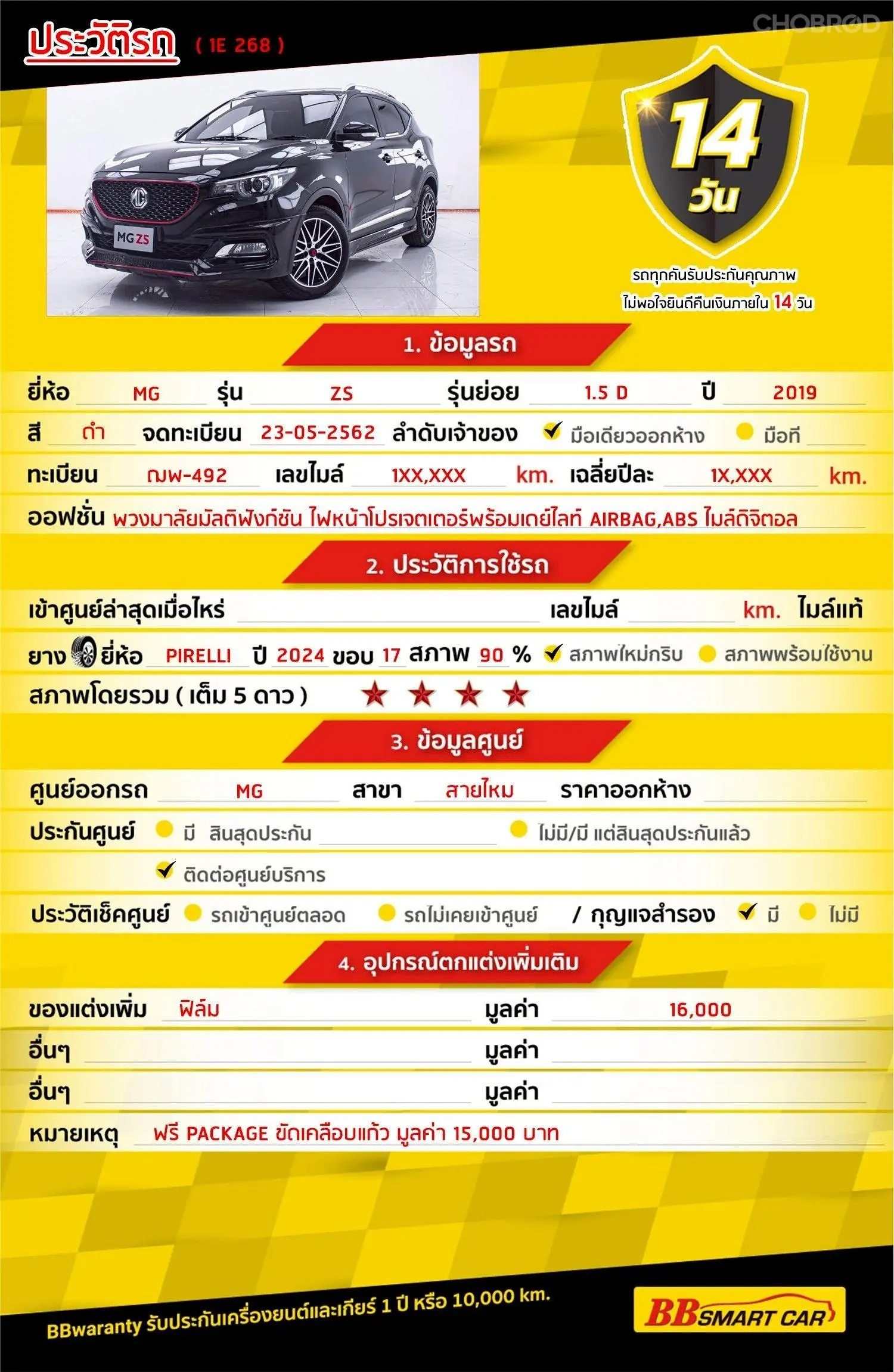 MG ZS 1.5 D AT 2019 ออกรถ 0 บาท จัดได้ 279,000 Line:@bbsmartcar 🔥จอง 199 บาท ส่งบัตรประชาชน รู้ผลพิจารณาภายใน 30 นาที ไม่ผ่านคืนเงินจองทุกกรณี 🔥ซื้อรถกับ BB พร้อมให้คำปรึกษา แก้ทุกปัญหา ให้ทุกเรื่อง บริการ call center 24 ชม. 🔥BB Care Plus รับประกันหลังการขาย สูงสุด 2 ปี หรือ 20,000 km.. 🔥มีรถให้เลือกมากกว่า 1,800 คัน สาขา 1 สี่แยกมไหสวรรย์ ใกล้เดอะมอลล์ท่าพระ รหัสรถ 1E268 ราคา 259,000 บาท ผ่อนเพียง 4,504 บาท Brand. : MG Year. : 2019 Model. : ZS Grade. : 1.5 D Engine. : 1500 CC Type. : เบนซิน Gearbox : AT Color. : ดำ Mileage. : 117,XXX KM. (ซื้อสด ราคานี้ยังไม่รวมค่าดำเนินการ 10,000 บ.) 🚩 Price. 259,000 บาท ยอดจัด : 269,000 บาท เงินดาวน์ : 0 บาท ประกันภัย : ฟรีประกันภัย 1 ปี ค่าดำเนินการ : 10,000 บาท รวมออกรถ : 0 บาท ผ่อน 36 งวด = 8,304 บาท ผ่อน 48 งวด = 6,306 บาท ผ่อน 60 งวด = 5,635 บาท ผ่อน 72 งวด = 4,955 บาท ผ่อน 84 งวด = 4,504 บาท เงื่อนไขเป็นไปตามที่ไฟแนนซ์กำหนด โปรโมชั่นพิเศษ สำหรับลูกค้าเครดิตดีลือกรับเรทดอกเบี้ยพิเศษ 📍36 งวด = 1.29 % 📍48 งวด = 1.99 % 📍60 งวด = 2.39 % 📍72 งวด = 3.59 % 🔥 เงื่อนไข โปรโมชั่น ดอกเบี้ยเริ่มต้น 1.29% ตลอดอายุสัญญา - ยอดจัดไฟแนนซ์ 300,000-600,000 บาท - ผ่อนสูงสุด 72 เดือน - เป็นลูกค้าประวัติดี พนักงานประจำเงินเดือน 20,000 ขึ้นไป - ค่าดำเนินการแคมเปญ 20,000 บาท (รวมในยอดจัดได้) 🎗Car Hightlight รถสวยๆ วันนี้ขอแนะนำ MG ZS 1.5 D AT 2019 จุดเด่นออฟชั่น 1 : พวงมาลัยมัลติฟังก์ชัน 2 : ไฟหน้าโปรเจตเตอร์พร้อมเดย์ไลท์ 3 : ไมล์ดิจิตอล 🎗ภายใน AIRBAG,ABS กระจกไฟฟ้า จอมัลติพร้อมกล้องหลัง เบาะหนัง 🎗ภายนอก ที่ปัดหมอกด้านหลัง ไฟท้าย LED ล้อแมกซ์ขอบ 17 นิ้ว กระจกมองข้างสีเดียวกับตัวรถ กระจกมองข้าง ปรับและพับด้วยไฟฟ้า พร้อมไฟเลี้ยวในตัว มือเปิดประตูภายนอก สีเดียวกับตัวรถ ไฟหน้า (ระบบเปิด-ปิดไฟหน้าอัตโนมัติ) 🎗ความคุ้มค่า สำหรับคันนี้หากเปรียบเทียบราคากับคุณภาพ คันนี้ถือว่าคุ้มค่ามากค่ะ ผ่อนสบายๆก็มีรถขับได้ รถดีมีคุณภาพแบบนี้รีบตัดสินใจซื้อได้เลราคานี้มาไวไปไวนะคะ ⭐️การรับประกันหลังการขาย BB Care Plus สูงสุด 2 ปี หรือ 20,000 km. ด้วยช่างที่ผ่านการอบรมจากศูนย์ชั้นนำของประเทศ 🎉Special offer เฉพาะ บีบีสมาร์ทคาร์ ที่นี่ที่เดียว ⭐ดอกเบี้ยเริ่มต้น 1.29% มีไฟแนนซ์รองรับหลายที่ค่ะ ⭐ฟรี!! แพคเก็จ ขัดเคลือบแก้ว มูลค่า 15,000 บาท ทุกคัน ⭐อนุมัติไว 30 นาที นำเอกสารมาให้ครบรับรถกลับบ้านทันทีค่ะ ⭐BB Care Plus รับประกันหลังการขาย สูงสุด 2 ปี หรือ 20,000 km. ⭐มี 6 สาขา ในกรุงเทพและปริมณฑลใกล้บ้านท่าน ⭐รถทุกคันผ่านตรวจสอบ Inspection เรียบร้อยแล้วค่ะ ผ่าน 5 ดาวทุกคันค่ะ ⭐เซลล์ทุกท่านเป็นมืออาชีพพร้อมให้บริการทุกท่านแน่นอนค่ะ เลือกข้อเสนอที่ให้คุณมากกว่าที่อื่น เพราะเราเล็งเห็นแล้ว ที่บีบีสมาร์ทคาร์ ให้คุณได้มากกว่าที่อื่นแน่นอนครับ มาที่เดียวจบทุกปัญหา หลากหลายรุ่นให้เลือก