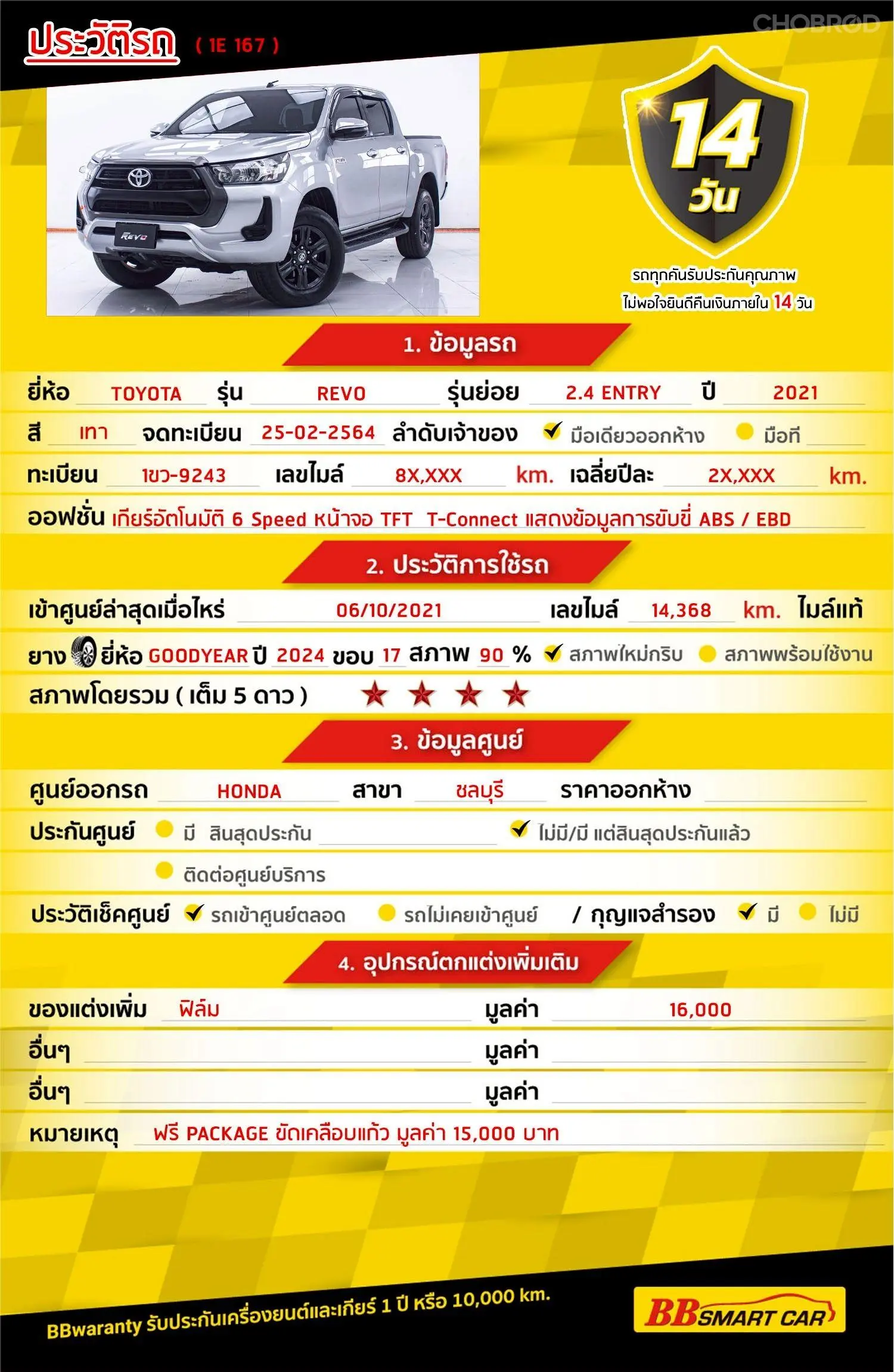 1E167 TOYOTA REVO 2.4 ENTRY PRERUNNER DOUBLECAB AT 2021